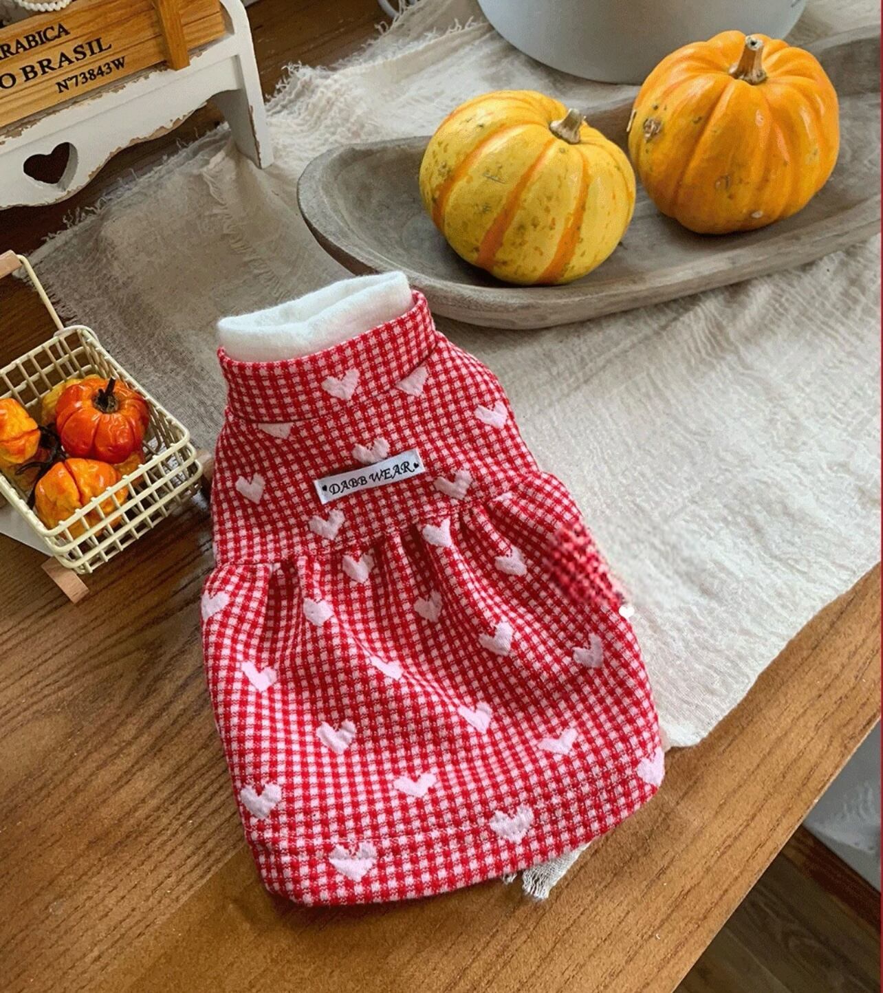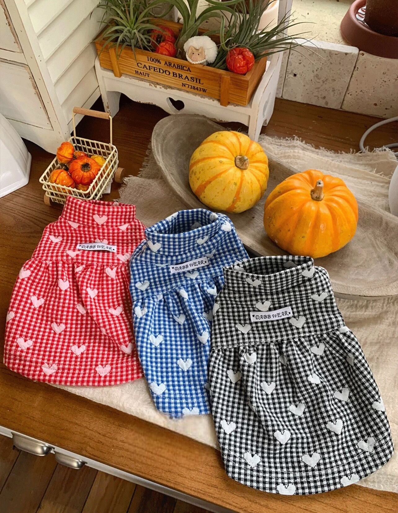 小さなハートが散りばめられたギンガムチェックのワンピース!見ているだけでキュンとする可愛さです。