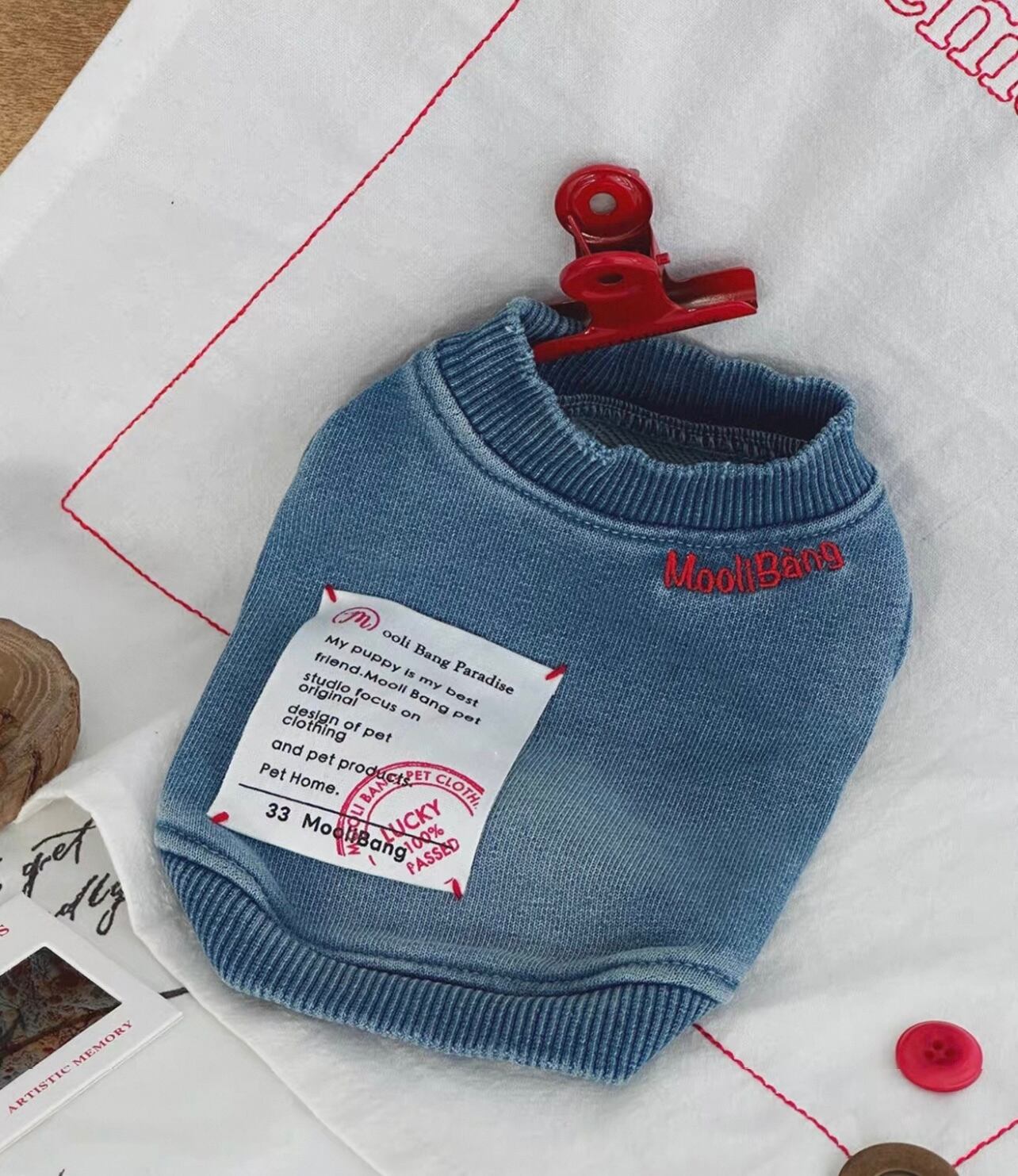 デニムパーカーとおそろいで着てもかわいい、兄弟わんこコーデにもおすすめです!