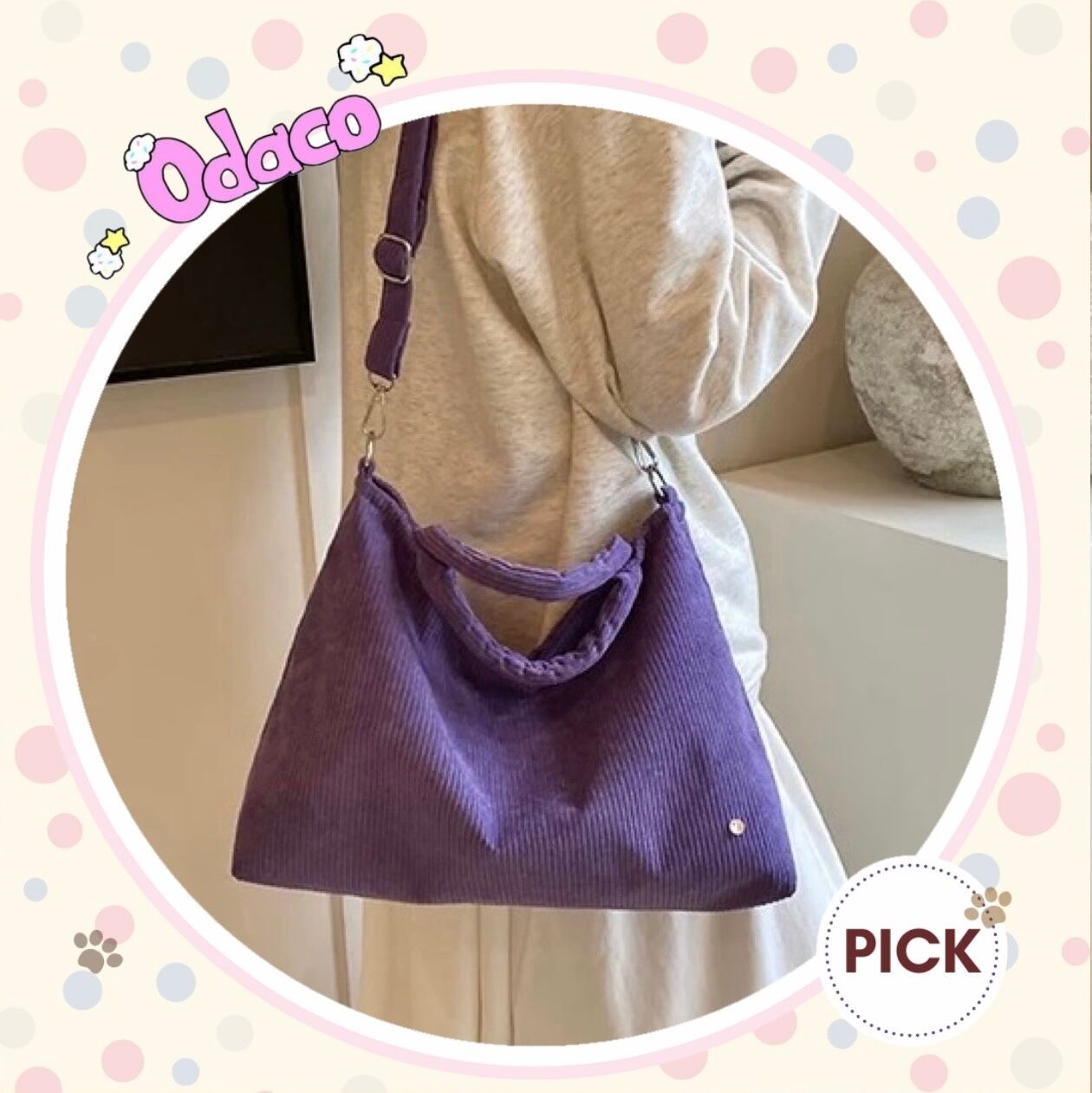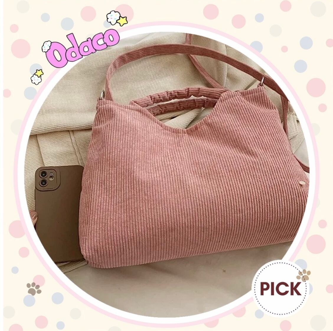 シンプルなコーデュロイ生地のバッグです。